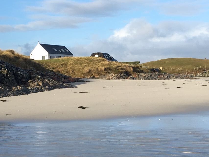 Completed in 2010 Middle House is an architect-designed 'long house' situated on the machair beside the beautiful white beaches at Caolas and over looking the Gunna Sound with views to Rhum, Gunna, Coll and the Isle of Mull